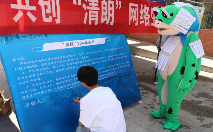 活动现场,工作人员向同学们发放了关于反电诈、文明上网等宣传单,并围绕青年群体面临的网络欺凌、网络谣言、网络诈骗、网络交友、网络沉迷等内容进行了现场宣讲和互动。随后,同学们现场宣读“文明上网、清朗网络”的倡议书,号召员工们自觉践行网络文明公约,争做维护网络安全的卫士。员工们纷纷在签名墙签上自己的名字,为共建网络安全、共享网络文明许下庄严承诺。