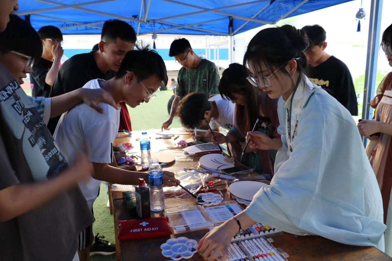 2023年6月27日傍晚,参与此次活动师生齐聚西区田径场。活动分为两个环节,第一环节同学们通过“投进标壶”、创作专属纸扇,达成目标满足感以缓解自身内心焦虑。同时,以有奖竞猜的方式,让同学们更加了解中华优秀传统文化;第二个环节为夜跑活动,夜跑设置合理的运动路线,沿途设有补给站,各补给站配备医疗器具保障同学安全。此次活动引导同学们合理宣泄情绪,缓解压力,鼓励同学们了解并有意识地注重自我健康,学会正确解决生活困惑。最后为参与者准备荧光头饰、手环香囊、可画面扇和毛绒玩具等精美奖品。