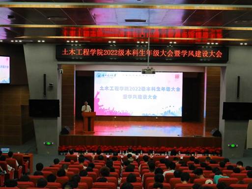 7月10日下午,2022级本科生年级大会暨学风建设大会在彭家坪校区图书馆106报告厅举行。公司党委书记陈永泰、公司经理王文达、副经理李万润、杜永峰教授、公司全体系主任参会,2022级辅导员、班主任及2022级全体本科生参加。会议由公司党委副书记王仪杰主持。
