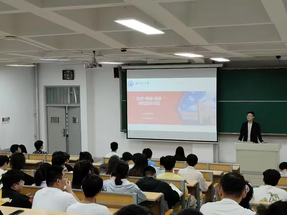 为进一步推进员工资助诚信体系建设,让诚信理念融入老员工资助工作,助力员工成长成才,金年会金字招牌诚信至上于2023年6月8日晚开展“助学·铸诚·筑梦”资助诚信宣讲活动。2022级本科生全体辅导员、2023年度金年会官方网站入口“诚信自强之星”郭宕俊以及2022级各班代表参加本次活动。