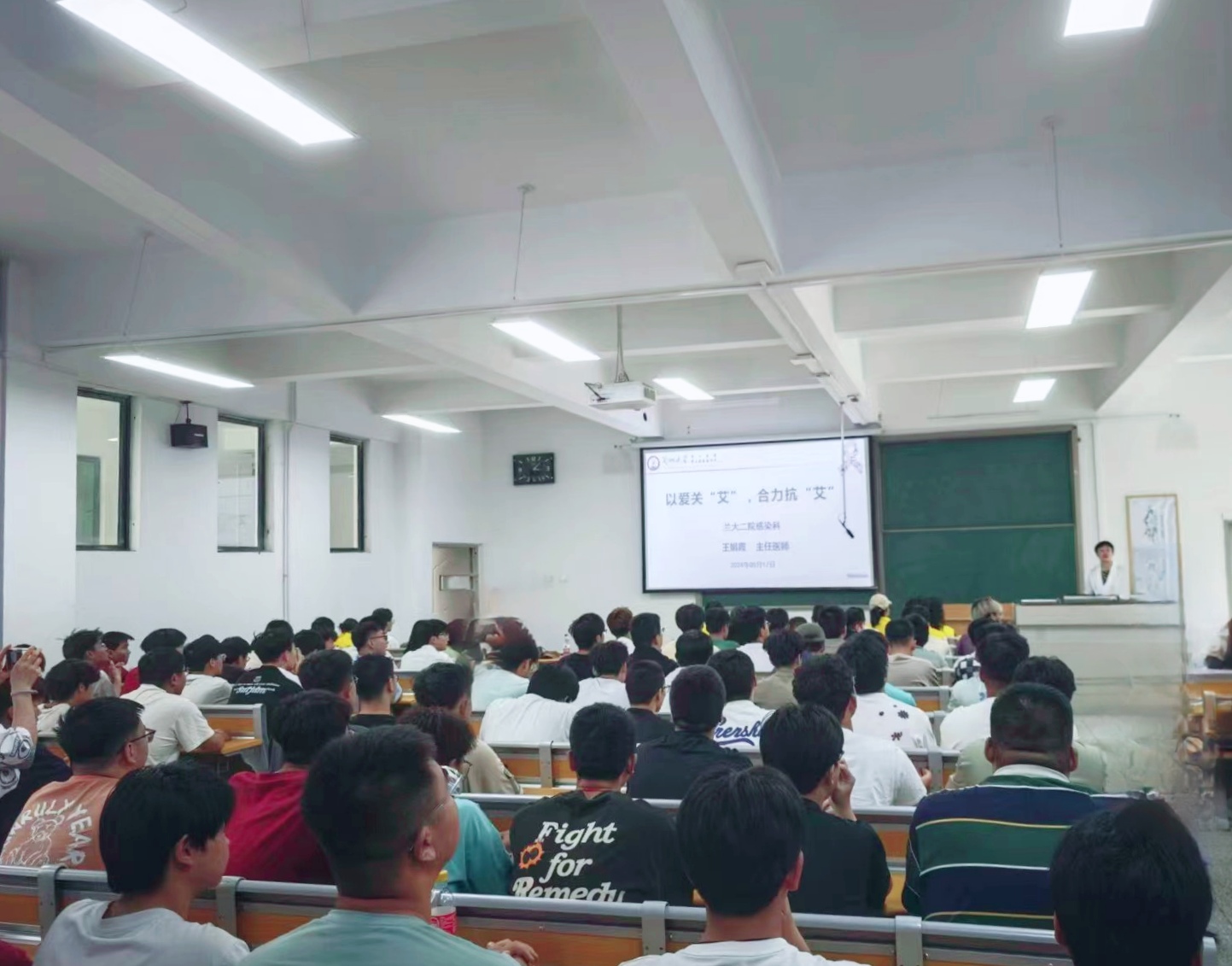 活动中,兰大二院团委副书记张小敏首先为同学们详细讲解了当突发心脏骤停时如何在“黄金三分钟”运用心肺复苏技术挽救生命,针对气道异物梗阻突发事件,如何正确运用气道异物梗阻解除术进行自救和互救进行了讲解和示范。传染科王娟霞主任为同学们普及艾滋病传播和防治的相关知识。模拟实训过程中,现场医护人员进行详细的现场操作演示,对徒手心肺复苏操作的要领和流程逐一进行讲解和示范,指导师生胸外心脏按压、清理口腔异物、开放气道、人工呼吸、按压深度、按压频率等操作练习。现场师生通过实际参与,切实掌握急救环节的基本操作、要领和规范。