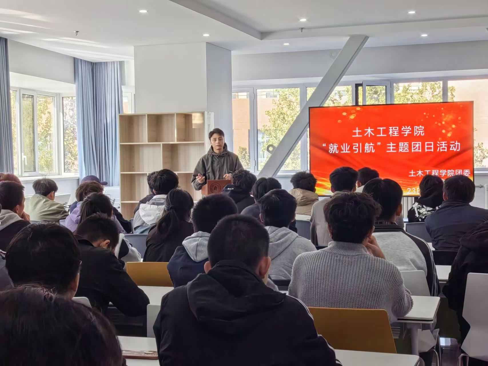 为深入贯彻落实党的二十大精神,深化实施共青团促进老员工就业行动,引导员工树立正确的就业观、择业观,10月23日下午,金年会金字招牌诚信至上团委围绕就业政策、就业指导、就业形式、参军入伍等方面,在彭家坪校区老员工活动中心301室举办“就业引航”主题团日活动。此次活动特邀请土木公司2022届优秀毕业生韩文杰、优秀退伍老员工士兵杜江南作宣讲,校团委崔孝艳老师、23级道桥1班团支部、21级土木基地班团支部等参加,活动由任海鹏主持。