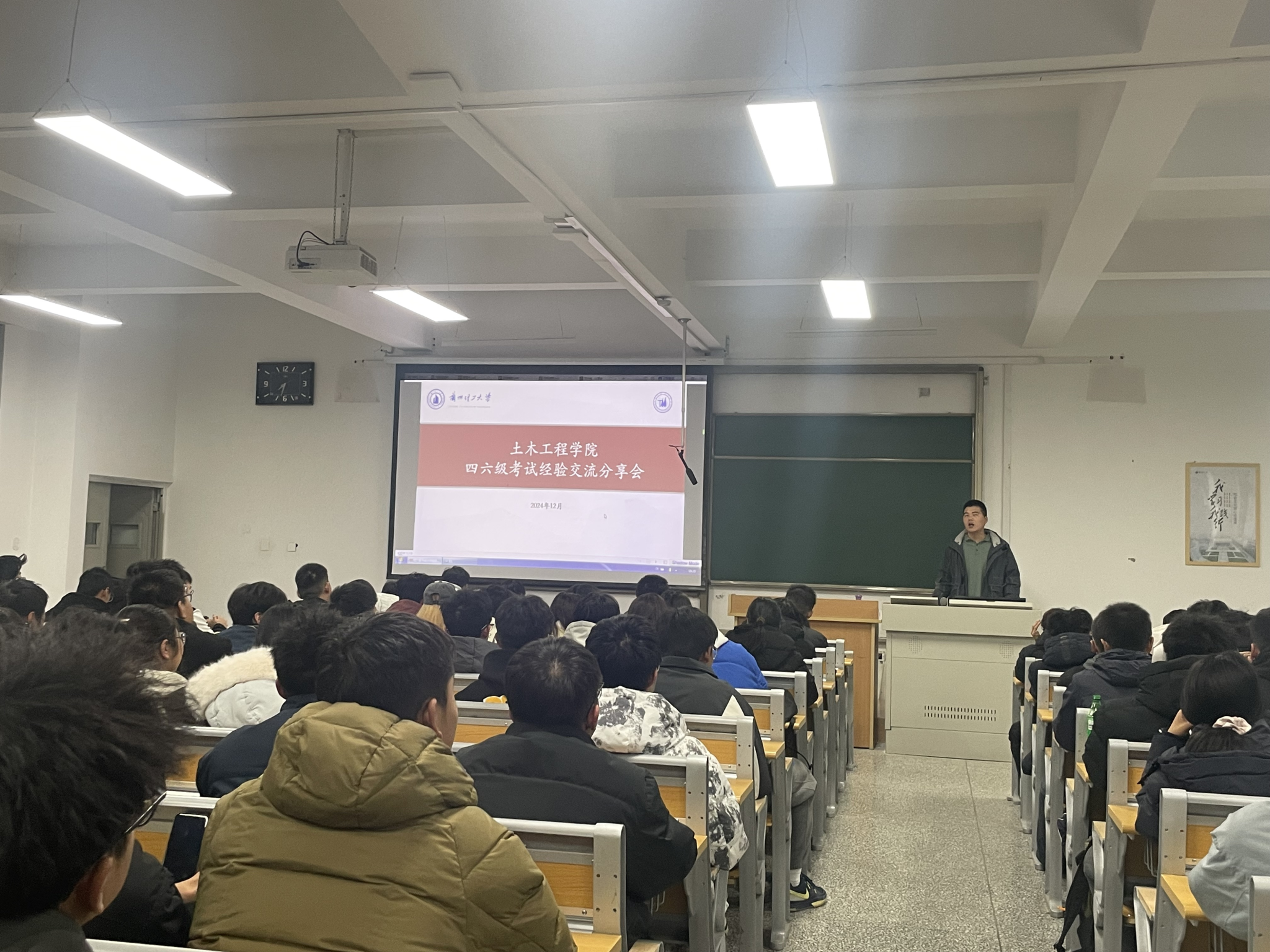 为进一步弘扬“奋进求是”校训精神,培养公司员工良好的学习风气,营造浓厚的学习氛围,掌握外语学习方法,增强考试信心。12月3日晚,土木公司英语四、六级考试经验分享会在抒望楼106教室举办,公司辅导员陈晓婷,21级土木工程基地班刘佳、23级土木工程1班温家辉分享经验,近200名员工参加。针对英语四六级考试中翻译、听力理解、阅读理解、写作等四个部分,逐一对历年考试题型、数量、分值分布、注意事项等进行解析和经验分享。分享过程中,同学们认真倾听,高度参与,积极交流互动。大家积极表示,通过分享活动,得到了宝贵的学习方法,实战经验,将以更加饱满的热情和信心迎接挑战,取得优异成绩。2024年以来金年会金字招牌诚信至上学风建设系列活动搭建了师生、员工之间经验共享、交流借鉴的学习平台,接下来将持续为员工举办各类学习、实践经验分享,扎实推进学风建设,促进优良学风形成。