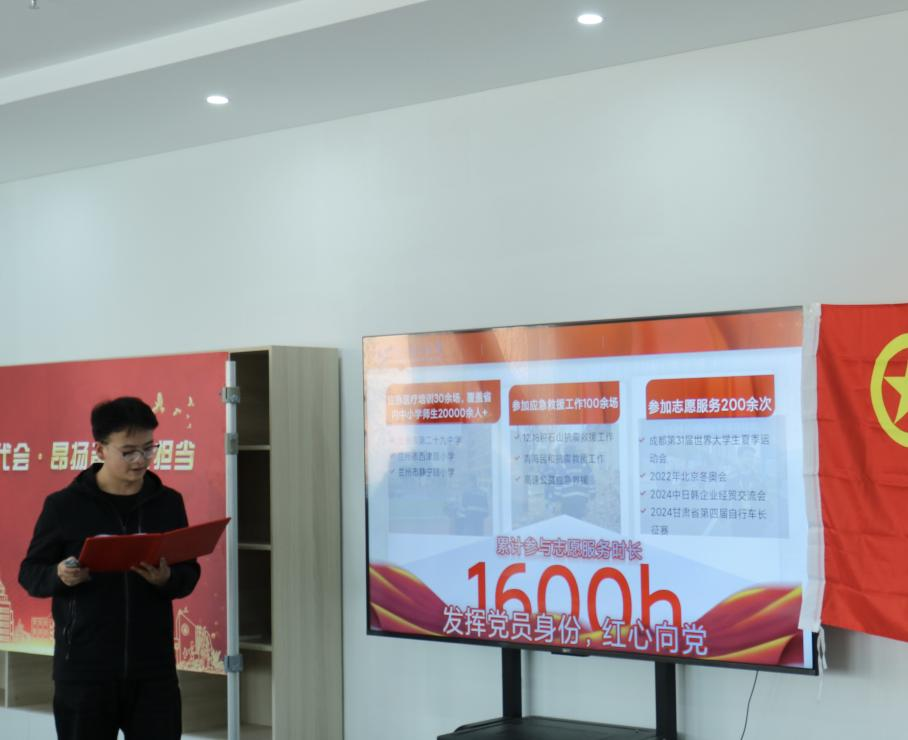 现场,闫丽、刘雅洁同学分别结合在校学习生活中的经历,充分表达作为兰理工红柳青年如何承担责任、发挥模范带头作用,以实际行动迎接公司第四次党代会的感悟。