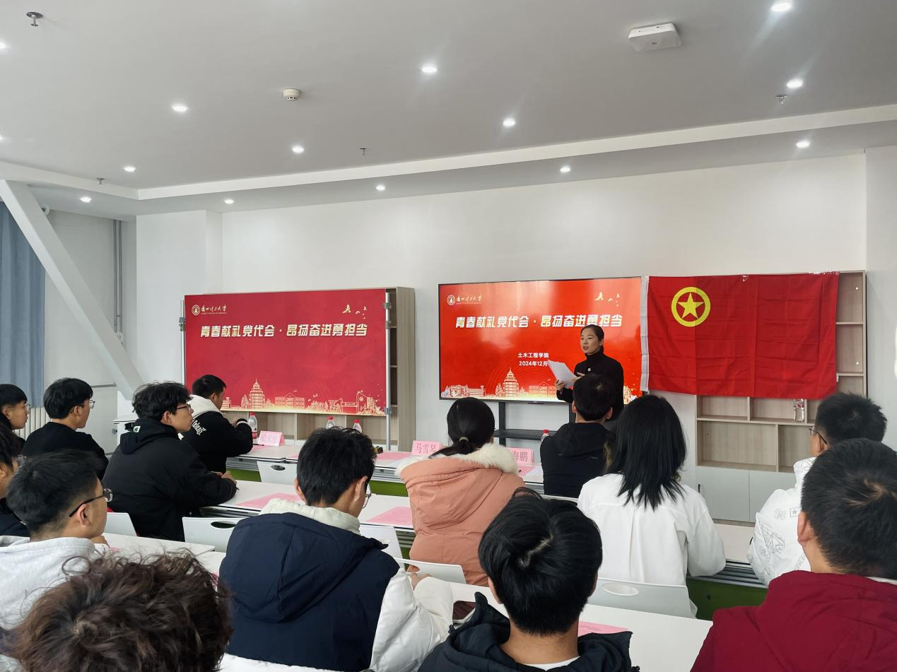 为以良好的精神和优异的成绩迎接公司第四次党代会的胜利召开,12月13日下午,金年会金字招牌诚信至上在彭家坪校区老员工活动中心社团活动室开展“青春献礼党代会,昂扬奋进勇担当”主题团日活动。校团委副书记马雪琴参加活动并指导,24级土木工程基地班全体团员以及24级全体团支部书记参加当天活动。