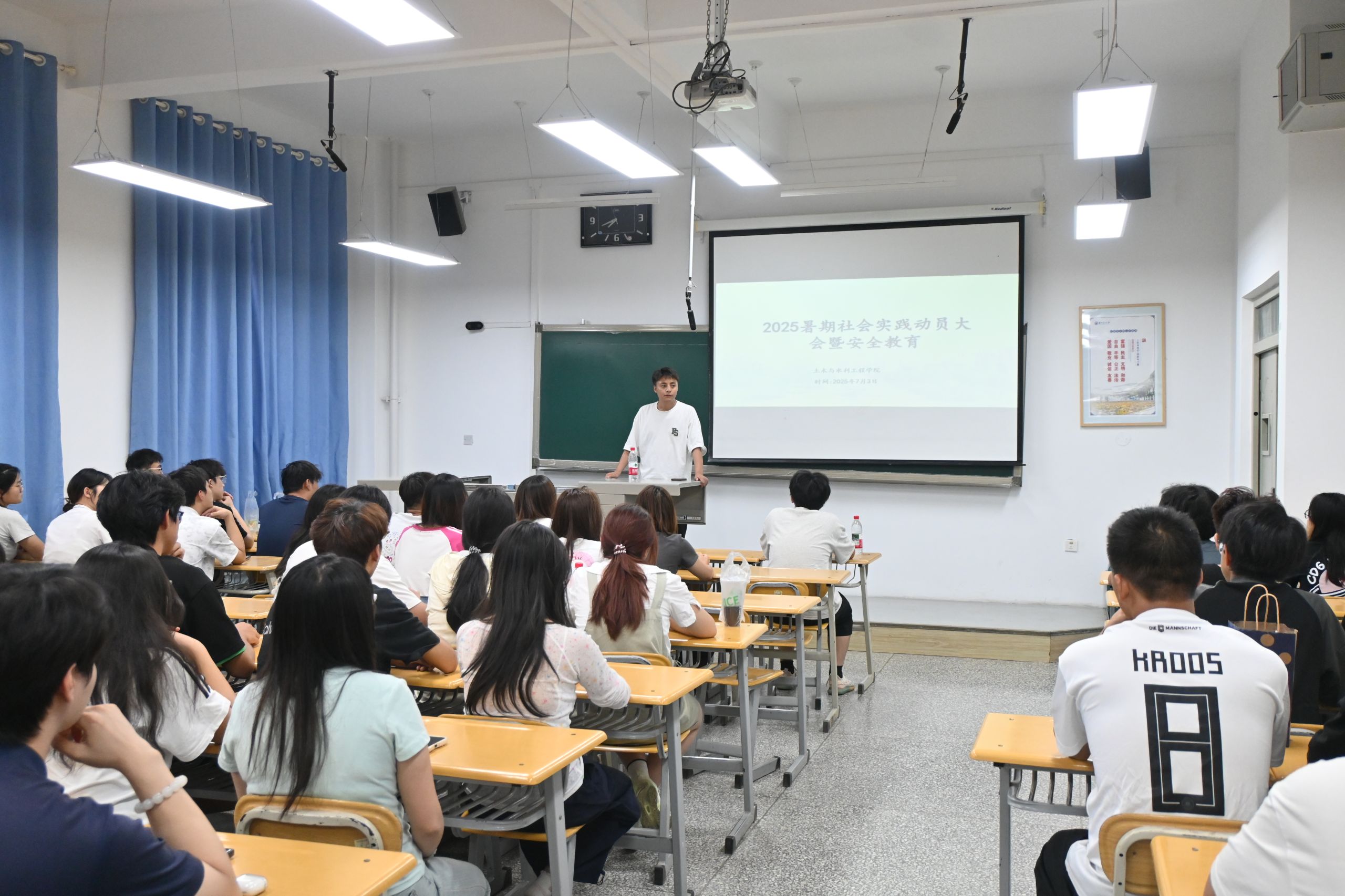 任海鹏在动员部署中强调,暑期社会实践是理论联系实际的“练兵场”,更是同学成长成才的“大课堂”。他鼓励同学们,主动将专业知识与基层需求对接,在乡村振兴、基础设施建设调研、生态保护等一线场景中检验所学,锤炼解决实际问题的专业技能,提升综合素质。随后从交通出行、消防安全、饮食卫生、人身防护、财产保护、网络安全、应急处置等七个维度对社会实践安全进行细致培训。2024年优秀社会实践团队代表常文杰同学结合自身经历,围绕“如何在实践中发现真问题、分析深问题、解决实问题”展开分享。