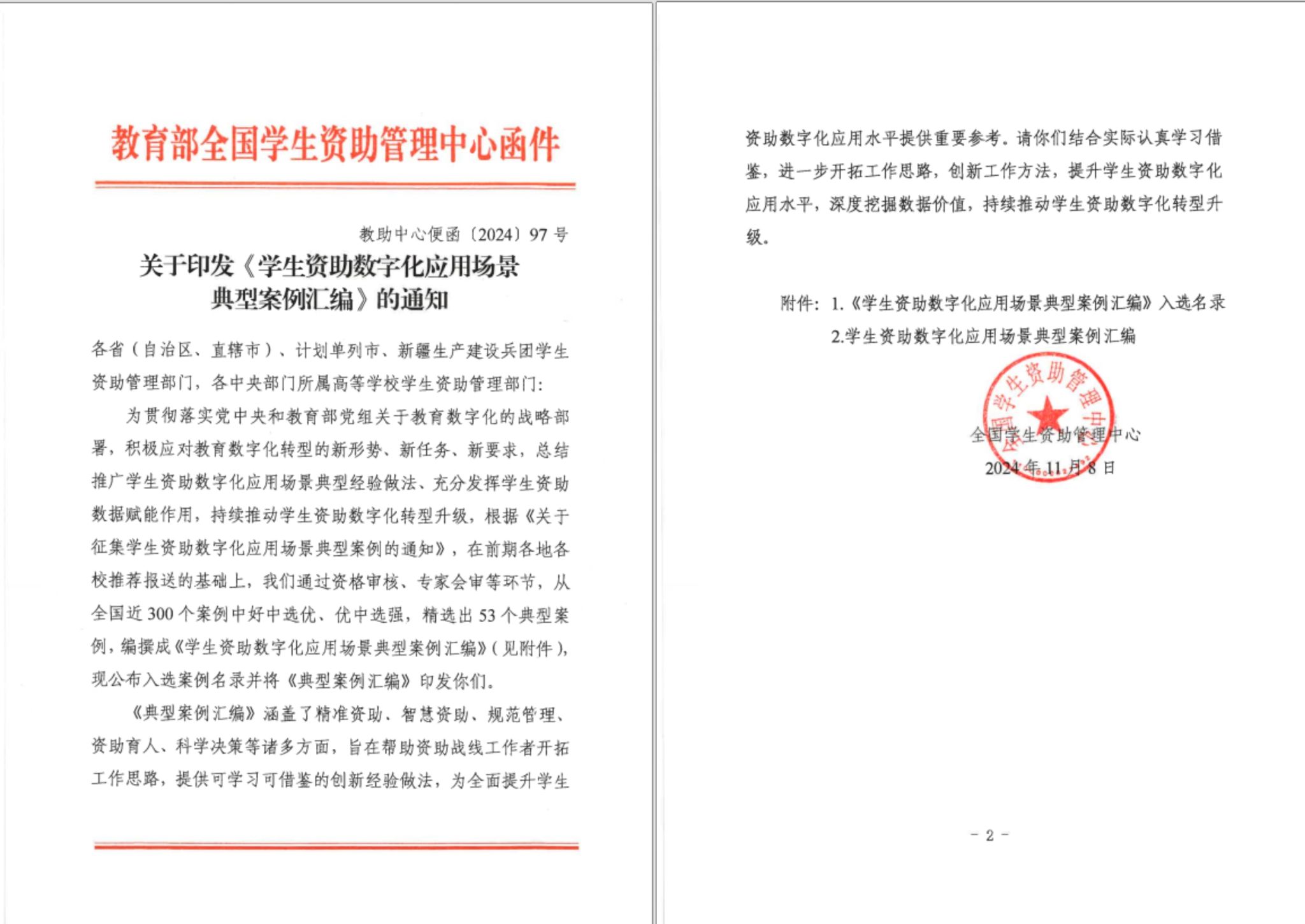 金年会官方网站入口《基于R语言的家庭经济困难员工数字化认定》工作案例近日成功入选教育部全国员工资助管理中心组织征集的“员工资助数字化应用场景典型案例”。