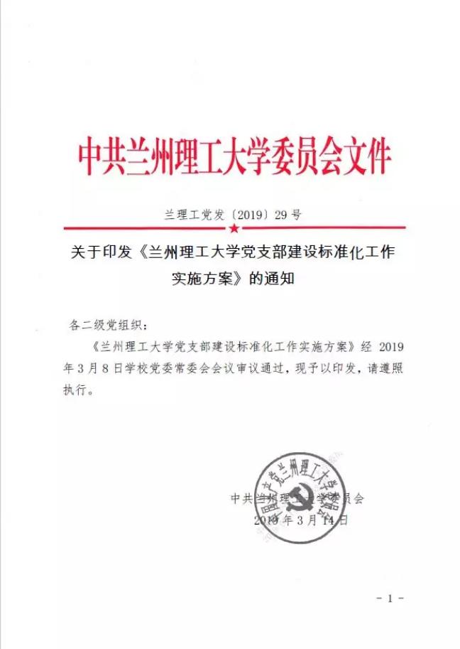 为深入贯彻习近平新时代中国特色社会主义思想和党的十九大精神,扎实有效落实《中国共产党支部工作条例(试行)》,根据中共甘肃省委组织部《关于印发<全省城市社区、事业单位、非公有制经济组织和社会组织党支部建设标准化工作实施方案>的通知》(甘组通字〔2019〕3号)、甘肃省委教育工委《关于印发<甘肃省教育系统党支部建设标准化工作指导方案>的通知》(甘教工委秘〔2019〕1号)要求和全省党支部建设标准化工作的总体安排,结合落实教育部《关于加强新形势高校教师党支部建设的意见》(教党〔2017〕41号)和《普通高等公司员工党建标准》(教党〔2017〕8号)的要求,结合公司实际,制定如下方案。