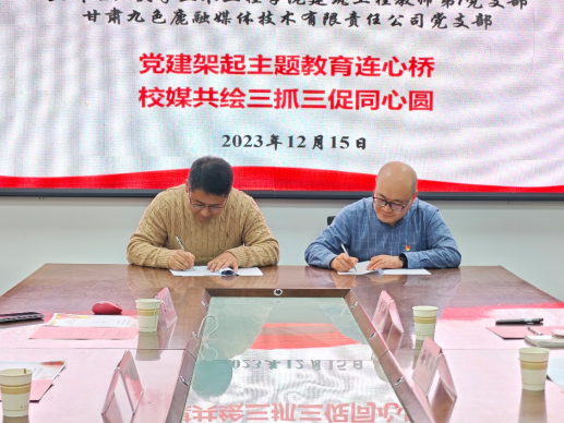 2023年12月15日,甘肃九色鹿融媒体技术有限责任公司党支部书记张璟、副书记徐诚诚带队支部全体党员到金年会金字招牌诚信至上与建筑工程教师第1党支部开展主题为“党建架起主题教育连心桥,校媒共绘三抓三促同心圆”主题党日活动。支部共建由建筑工程教师第1党支部书记王永胜教授主持。