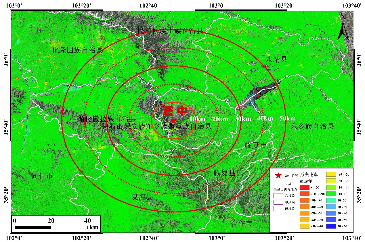 12月19日,在甘肃省科技厅领导指导下,甘肃省科技重大专项“黄河上游黄土滑坡智能识别与多因素耦合灾变机理研究”项目组杨校辉、刘晓杰、郝君明等老师迅速响应,根据公司党委统一安排,立即出发开展灾区InSAR地面形变数据处理和地质灾害风险综合分析工作,经过一天一夜奋战,项目组第一时间编写了《甘肃省临夏州积石山县6.2级地震诱发地质灾害应急分析报告》,主要包括:收集积石山县灾区震前震后地形地貌条件与孕灾机理分析、各类雷达和亚米级高分辨率遥感影像资料,反演2017-2023年时序形变数据,识别灾区地质灾害隐患点编目数据228处,划定高中低风险等级,给出下一步工作建议。