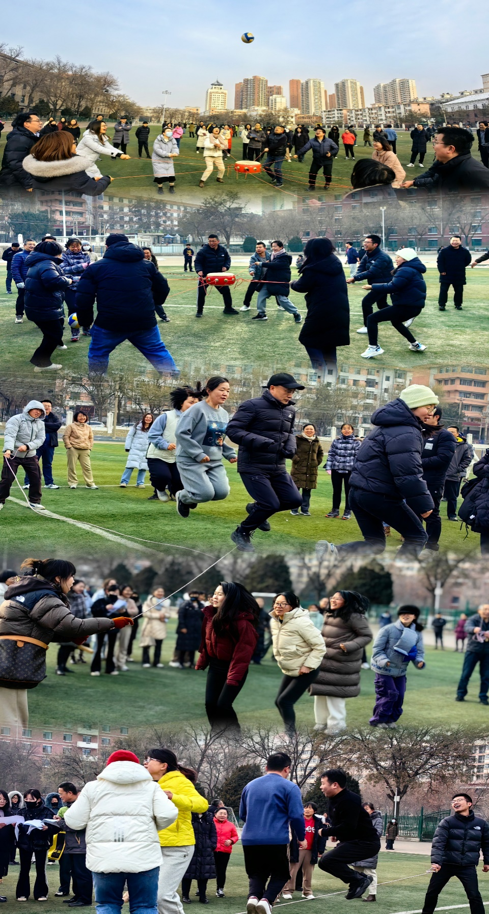 活动设置 “拔河、同心鼓、集体跳绳”三个项目,集趣味性、协作性和竞争性于一体。拔河比赛现场,以各基层组织、办公室组成的参赛队伍整齐列阵、紧握长绳,呐喊助威声震耳欲聋,充分展现了团结协作的力量。同心鼓项目中,老师们牵拉鼓绳、紧盯鼓面,心往一处想、劲往一处使,默契配合。集体跳绳赛场同样精彩,老师们协作无间,彩绳飞舞间尽显活力。